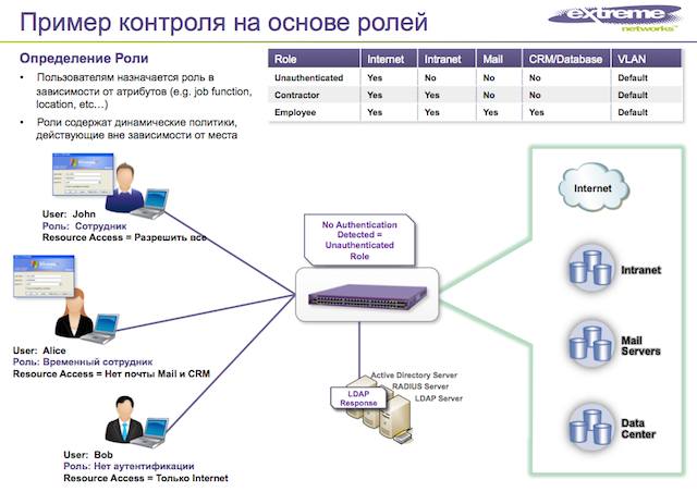 Использование технологии Identity Management (IDM) в коммутаторах Extreme