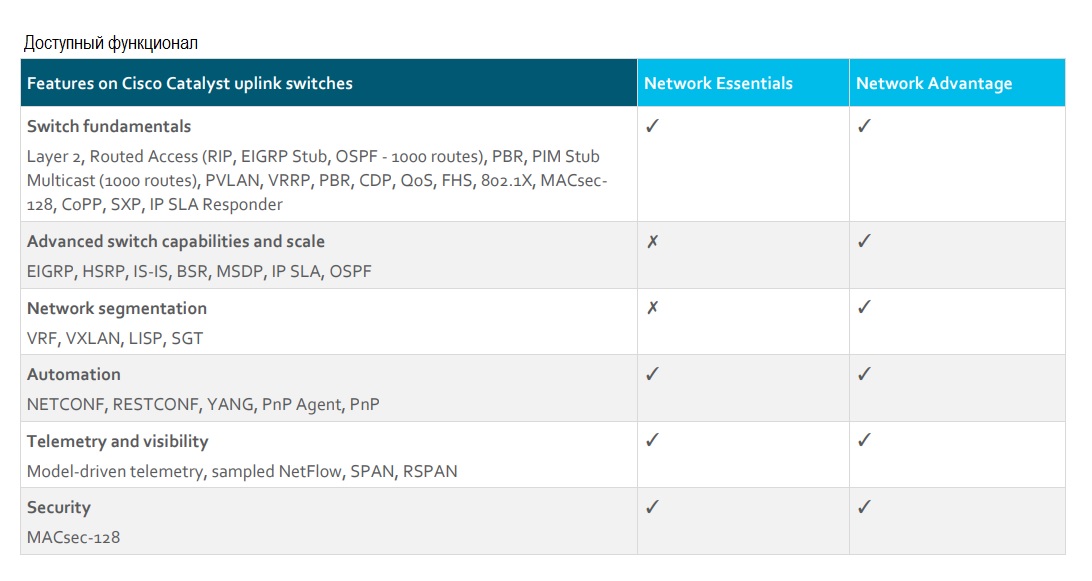 | Линейка Cisco | Catalyst 9200, 9200L |