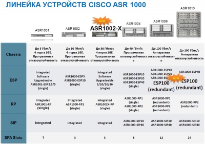 | Модель | Cisco ASR1002 | Cisco ASR1002-X | Cisco ASR1004 | Cisco ASR1006 | Cisco ASR1013 |