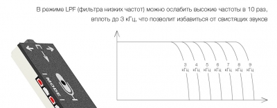 Режим LPF (фильтр низких частот) позволяет в 10 раз ослабить высокочастотный диапазон аудиосигнала.