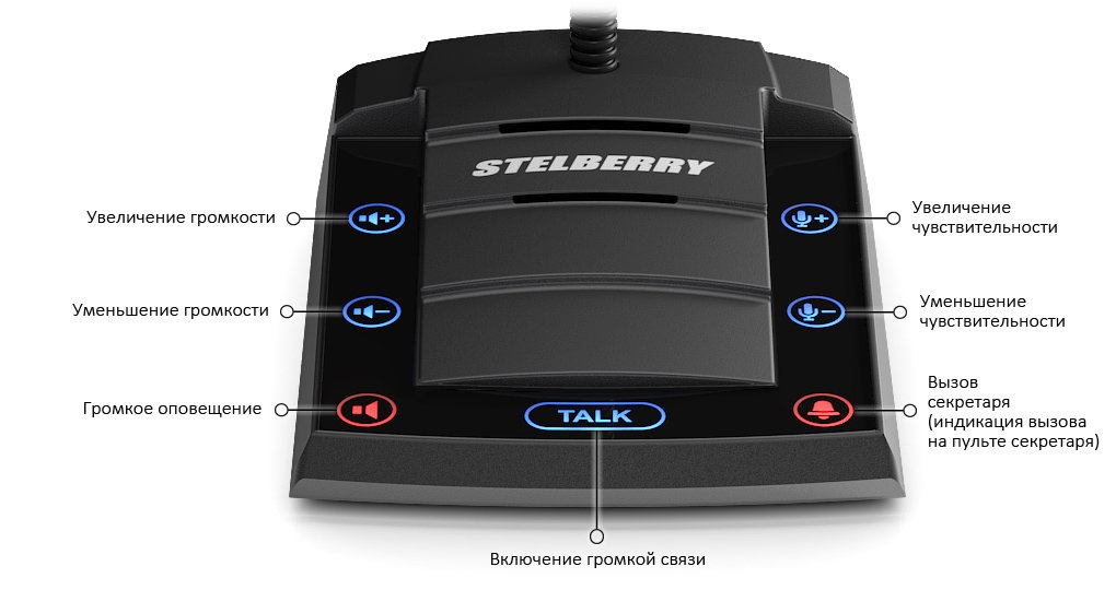 Подсветка микрофона переговорного устройства громкой связи автоматически включается во время разговора между директором и секретарем. Микрофоны пультов оснащены фильтрами ветровой защиты из акустического поролона, которые значительно улучшают качество звука, исключая влияние ветровой составляющей. Оба пульта оснащены функцией громкого оповещения.