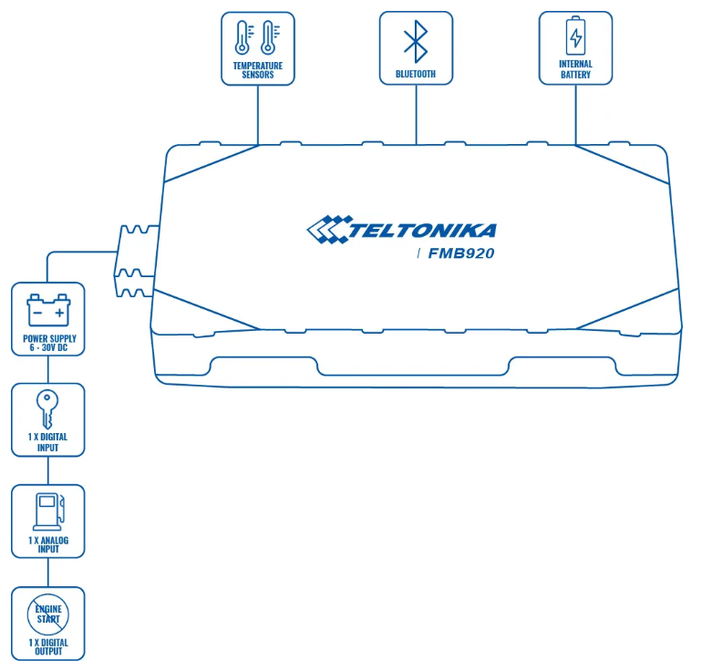 Teltonika FMB920 - это компактный интеллектуальный трекер с поддержкой Bluetooth, встроенными GNSS и GSM антеннами с высоким уровнем усиления и встроенным резервным аккумулятором. FMB920 предназначен для отслеживания легковых транспортных средств в таких сферах, как страховая телематика, аренда автомобилей, восстановление угнанных автомобилей, услуги общественной безопасности, транспорт служб доставки, такси и многого другого. Доступные входы/выходы расширяют сферы использования прибора. Цифровой вход можно использовать для контроля состояния зажигания, дверей или аварийной кнопки. Используя цифровой выход возможна дистанционная иммобилизация автомобиля.