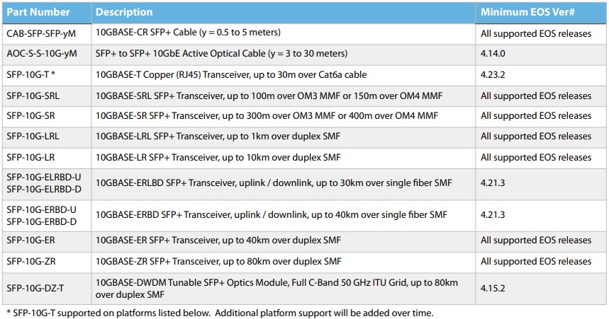 Возможность поставки других моделей модулей SFP+ Arista уточняйте у менеджеров