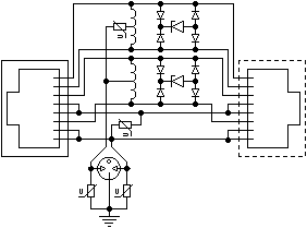 Диодный мост с TVS-диодом в диагонали обеспечивает подавление противофазных помех на сигнальной паре.
