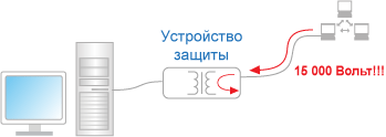 - Отсутствие электрической связи (гальваническая развязка) между защищаемым оборудованием и подключаемым кабелем.