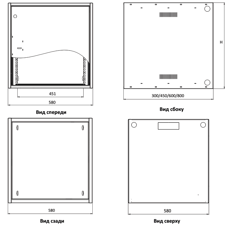 - 2 прямоугольных отверстия для кабельного ввода (150х50мм);