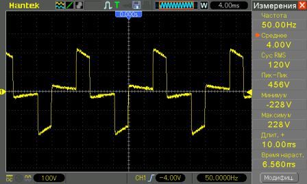 При работе от аккумуляторных батарей форма выходного напряжения становится аппроксимированной и для измерения напряжения потребуется аналоговый вольтметр или мультиметр с функцией TRMS.