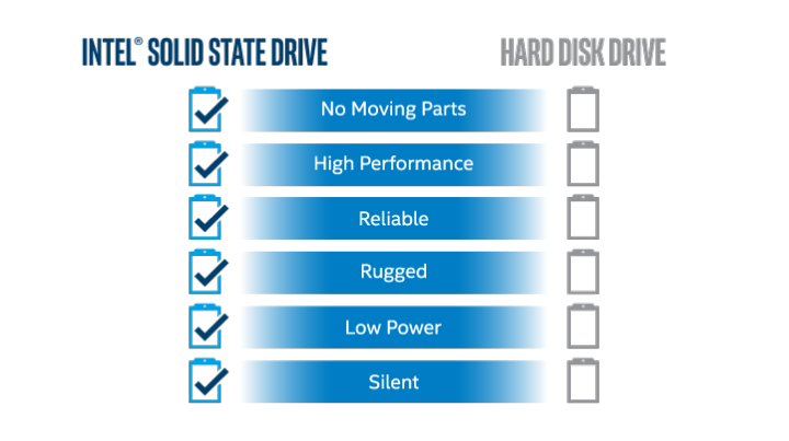 В твердотельных накопителях отсутствуют подвижные детали. В жестких дисках, напротив, используется механический рычаг для считывания информации с вращающейся пластины. Кроме того, твердотельные накопители созданы на базе энергонезависимой памяти, которая при отключении питания не «забывает», что в ней записано.