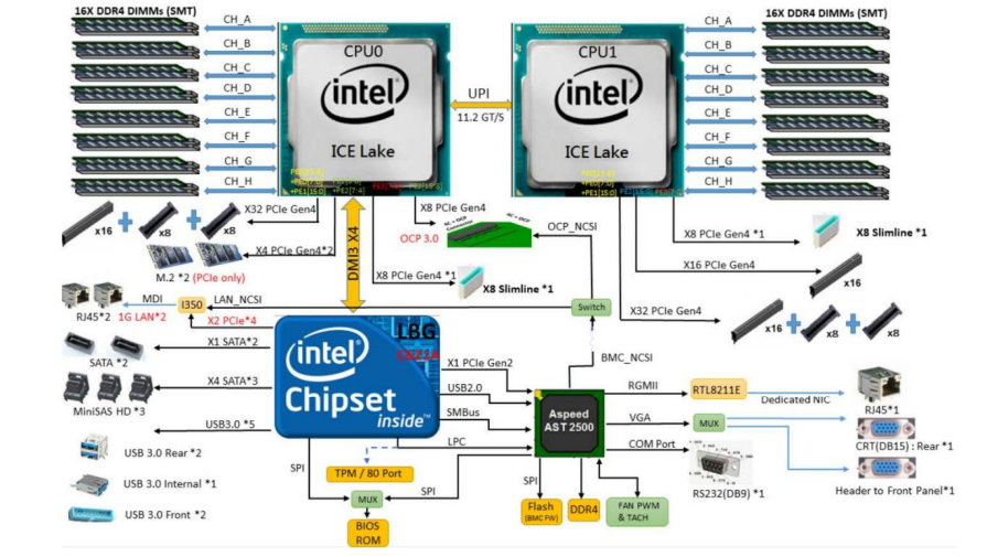 | Краткая спецификация | Платформа SNR-SR1310RS, 1U, 2xFCLGA4189, 32xDDR4, 10x2.5" SATA, 2x1GBaseT, 2xPSU |