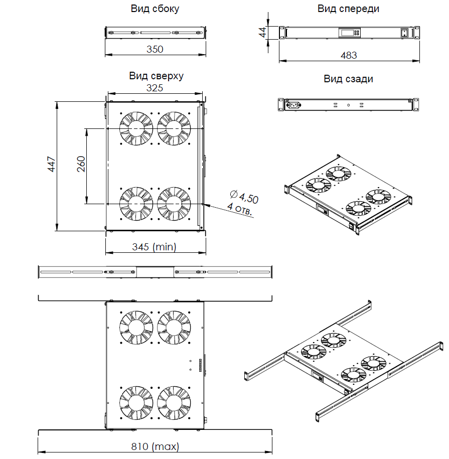 Максимальное количество устанавливаемых вентиляторов - 4 вентилятора (максимальная производительность одного вентилятора - 165 куб.м. в час).