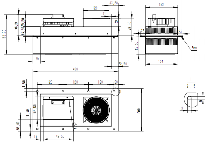 Термоэлектрический кондиционер 300 Вт для серверных шкафов SNR-ACC-300-TEC состоит из термоэлектрических преобразователей Пельтье, охлаждающих радиаторов, вентилятора и контроллера.